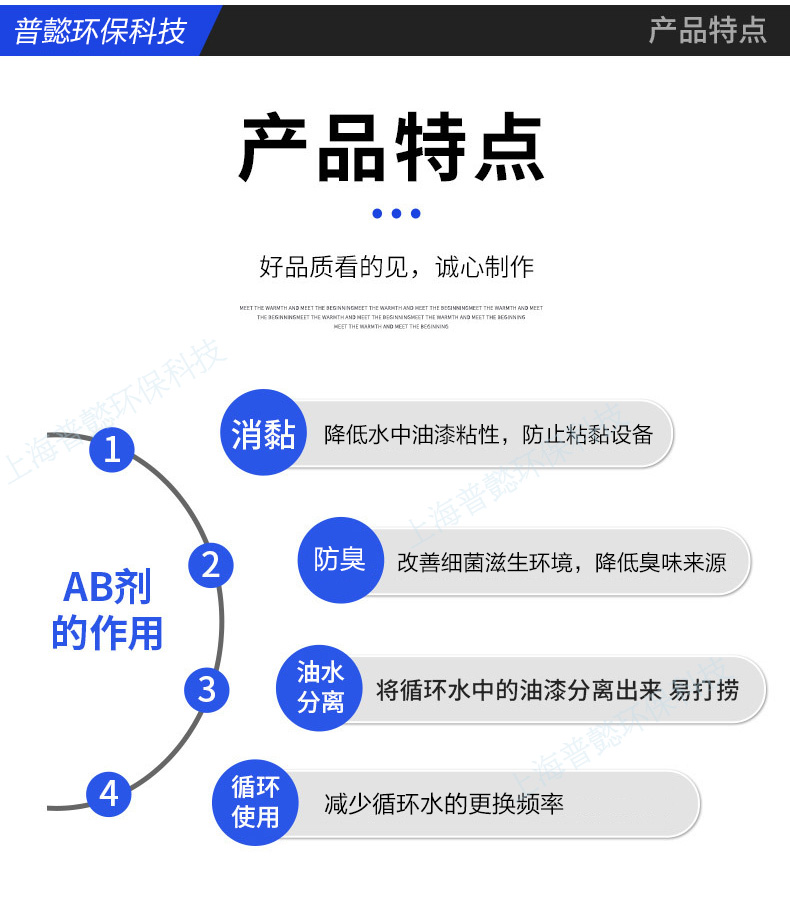 在大規模使用漆霧凝聚劑之前,須進行小試實驗。取一定量的噴漆廢水,按照不同的投加比例加入漆霧凝聚劑 A 劑和 B 劑,觀察漆霧的凝聚效果、漆渣的上浮情況以及水質的變化,確定投加量和使用方案。
